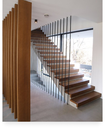 Эстетика и статус: Лестница, отделанная натуральным деревом, мгновенно становится визуальным центром интерьера, подчеркивает хороший вкус владельцев и значительно повышает статус всего жилого пространства.